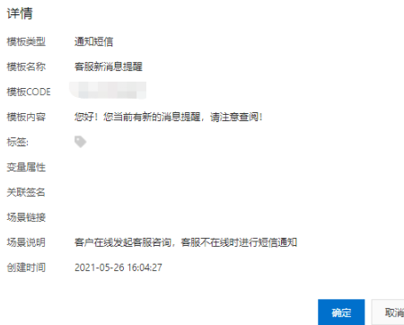 这方面只支持阿里云短信模板,如需要使用该功能,后台短信配置需要配置阿里云通道的,没有相关变量的,纯文字描述